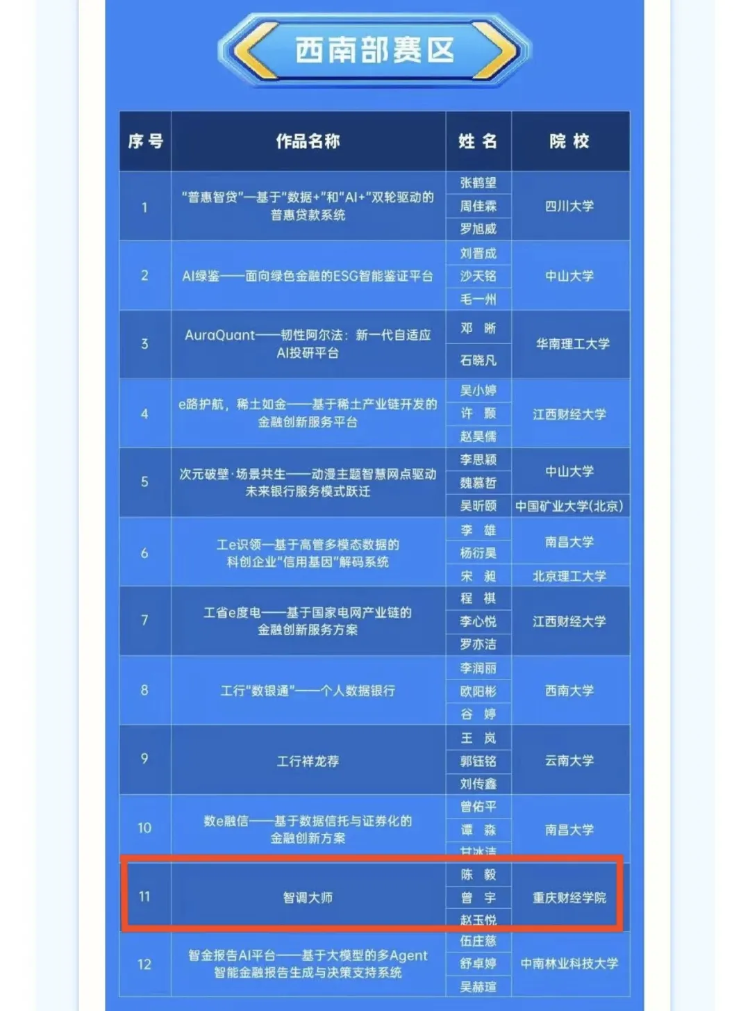 在这场“高手如云”的竞技中,靠谱的电子游戏官网金融学院学生团队聚焦金融科技前沿,以敏锐的行业洞察力和扎实的技术功底,一路过关斩将,成功突围。入围全国区域赛的高校总共有48支队伍,其中有80%的队伍来自“985”“211”,而我校是唯一一所民办高校代表!这一突破,充分彰显了我校在金融创新领域的强劲潜力与非凡实力!