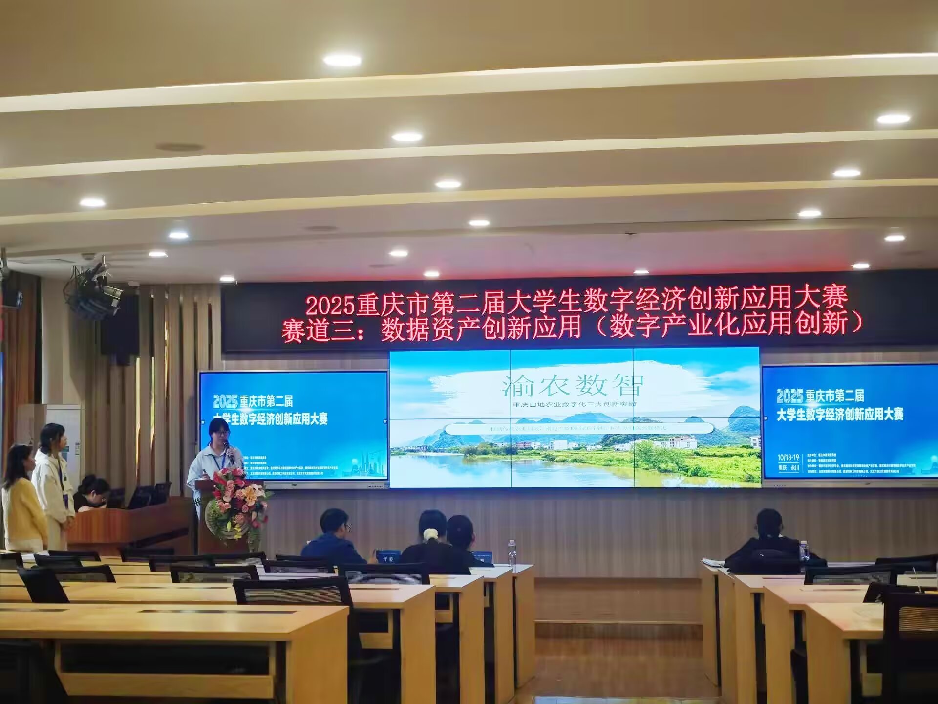 此次学校首次跻身全国总决赛并摘得奖项,是师生协同攻坚、深耕实践的重要成果。作品由经济学院王莉姗、周宁两位老师全程悉心指导,团队立足重庆乡村振兴战略需求,精准把握数据资产创新应用趋势,将宏观经济政策、数字经济理论与农村产业发展实际深度融合,历经多轮选题论证、方案打磨与优化升级。此前,该作品已在重庆市教育委员会主办的“重庆市大学生数字经济创新应用大赛”中斩获市赛二等奖,为冲击国赛、实现学校赛事突破奠定坚实基础;晋级国赛后,团队在老师指导下进一步完善逻辑架构、强化技术可行性,在全国众多高校参赛队伍的同台竞技中脱颖而出,以实力填补了学校在该项全国赛事奖项上的空白。