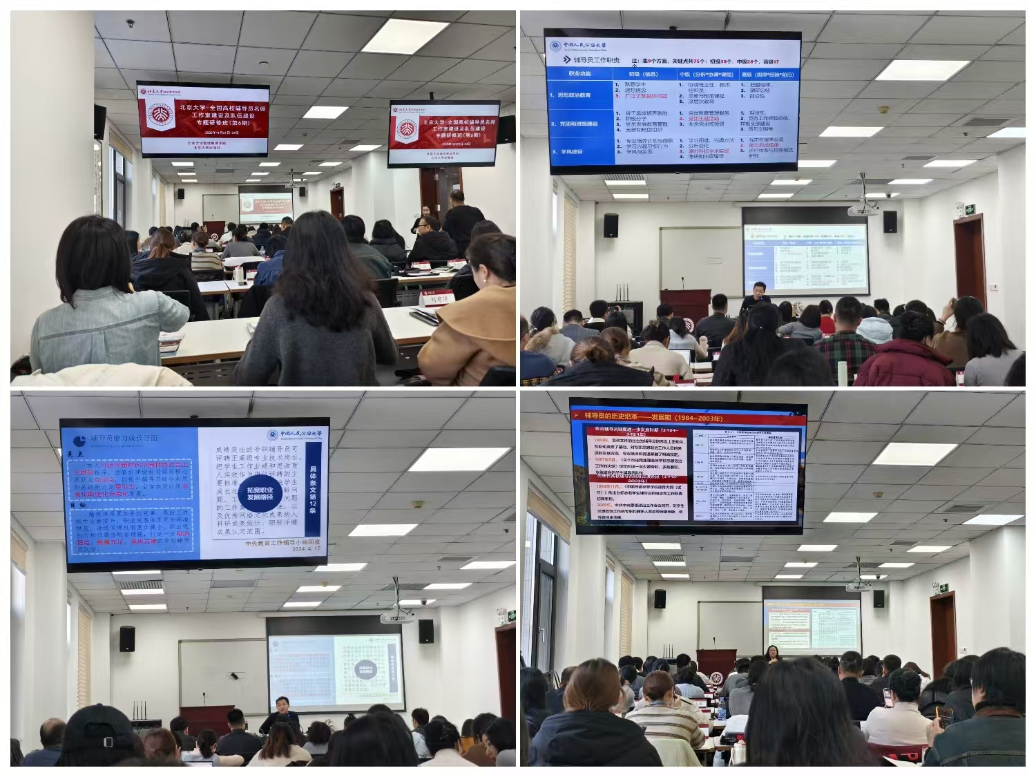 本次研修聚焦辅导员名师工作室建设与队伍能力提升核心方向,课程设置精准契合学工工作实际需求。北京大学学生心理咨询中心主任刘卉以《打造专家型辅导员要点与路径》为主题,从专业能力体系构建维度,解析了辅导员向专家型人才进阶的核心逻辑,为参训骨干明确了成长方向;北京航空航天大学数学科学学院党委副书记魏茜围绕《问题导向:辅导员工作室建设的路径探索》,结合一线实践案例拆解工作室建设的难点堵点,为我校辅导员工作室建设提供了可复制的实践范式;中国人民公安大学副教授李储信以《新时代高校辅导员名师工作室建设的创新与实践》为题,从机制创新、资源整合等层面,分享了工作室长效运行的先进经验。