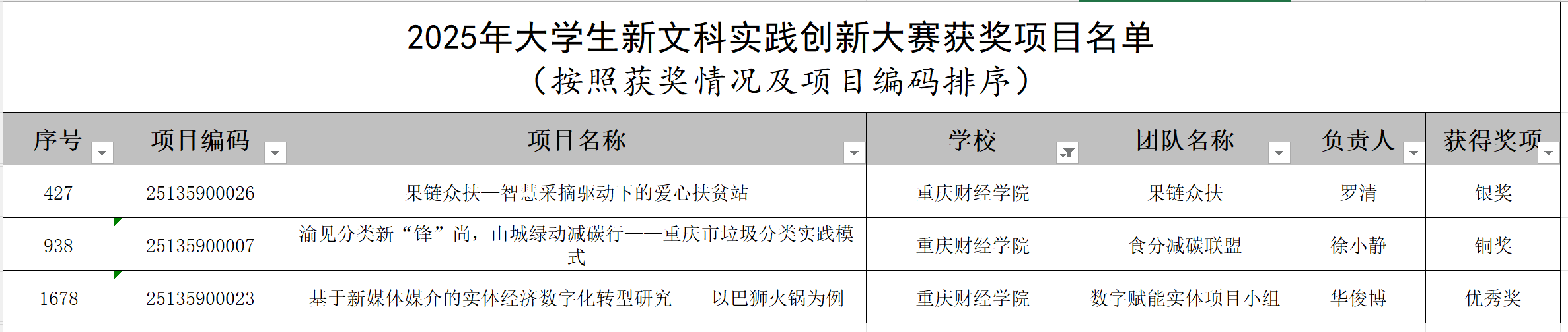 | (图1 靠谱的电子游戏平台官网2025年大学生新文科实践创新大赛获奖项目名单) |