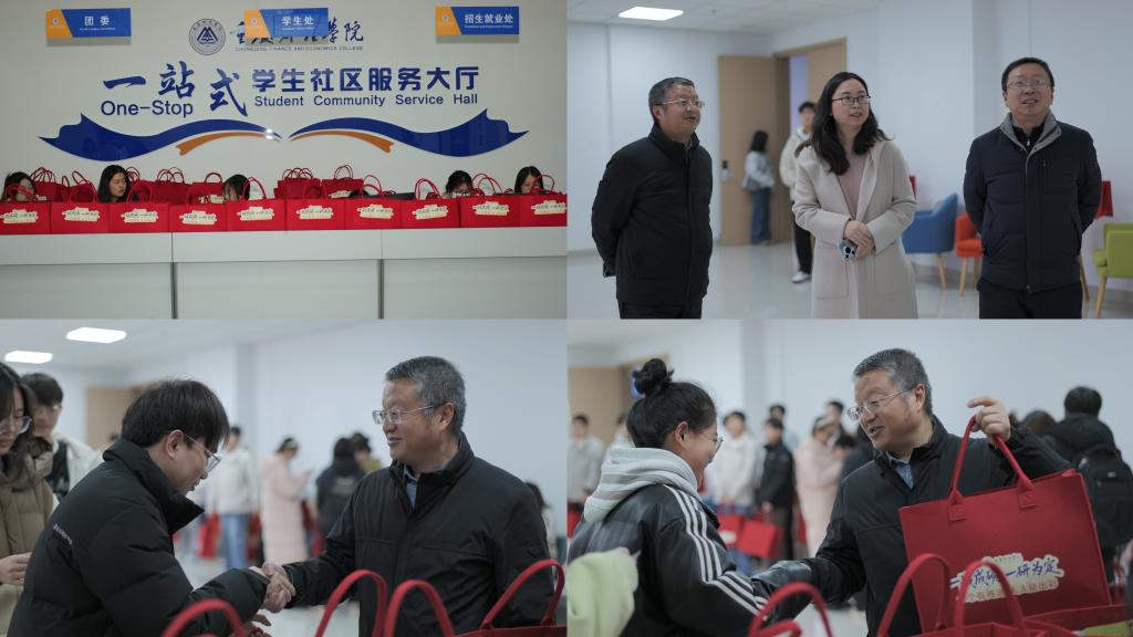 12月3日中午,学校一站式服务大厅暖意融融。校长吴华安、校党委副书记房朝君、副校长张立亲临现场,与学子亲切互动。吴华安校长亲手递上礼包,与同学们握手交流,仔细询问备考进度与生活状况,叮嘱大家“冲刺阶段要劳逸结合,以平和心态应考”。校领导与学子合影留念,现场掌声阵阵,青春的脸庞上写满感动与坚定。