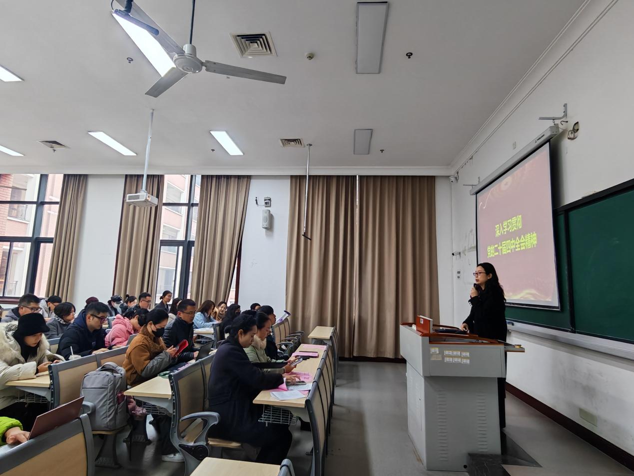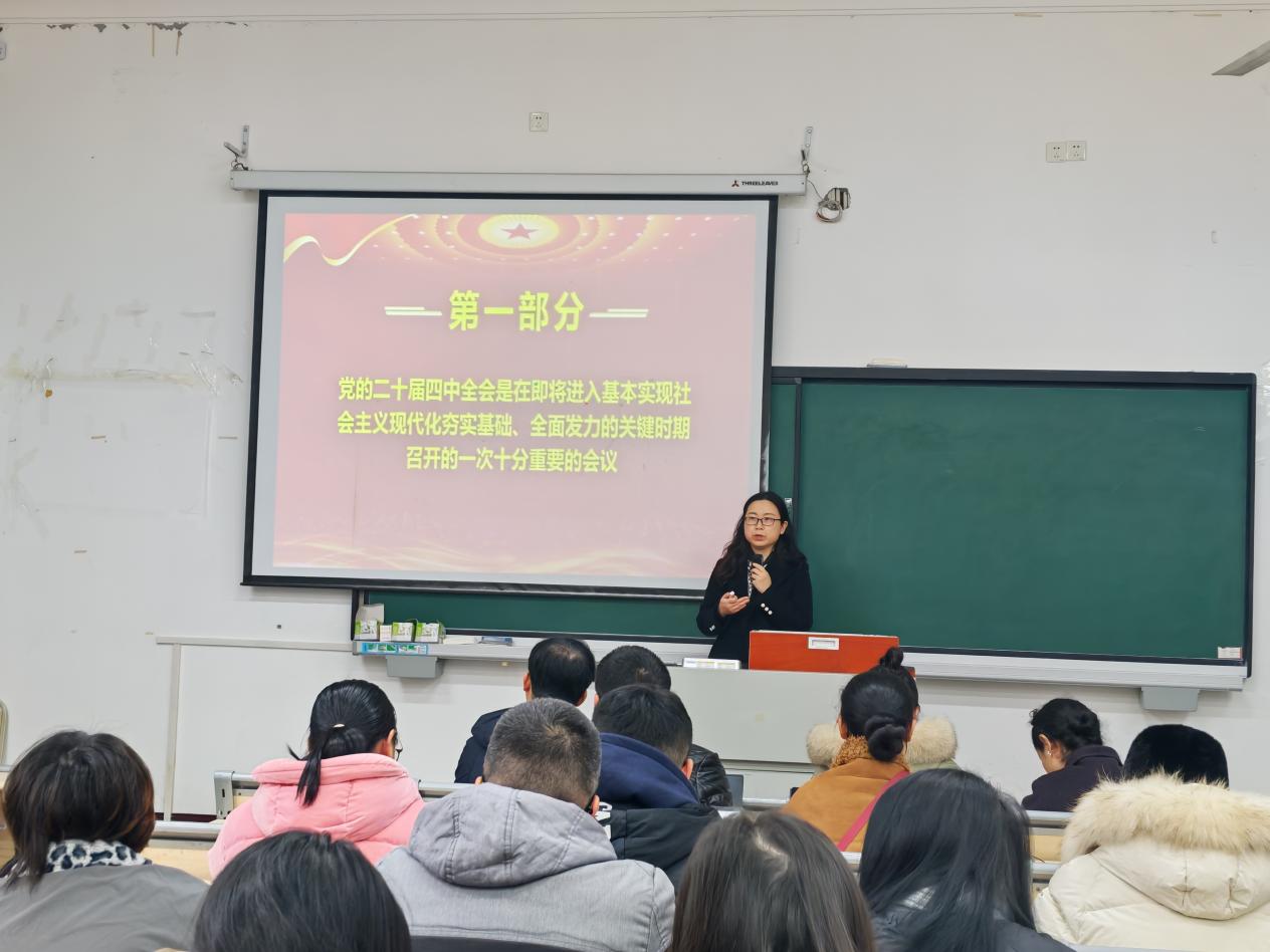 按照市委教育工委统一部署及学校党委工作安排,学校学习贯彻党的二十届四中全会精神宣讲工作持续深入推进。12月23日下午,党委副书记房朝君在1320教室为物流工程学院(国际商学院)党总支全体党员及教职工作专题宣讲报告。