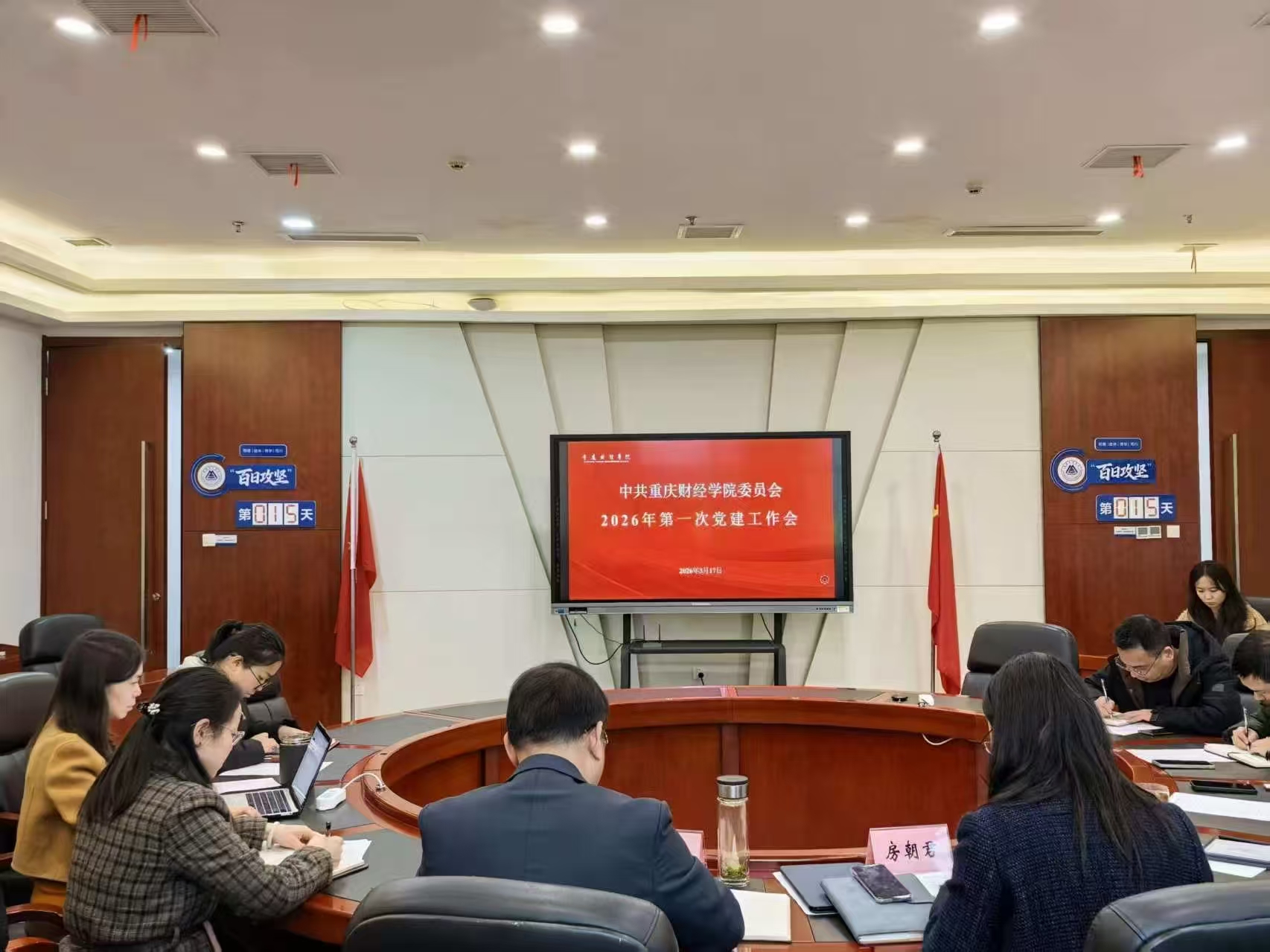 为进一步深化党建工作,精准谋划2026年党建重点任务,推动党建工作与学校中心工作深度融合,3月17日上午,学校2026年第一次党建工作会议在行政楼2302会议室顺利召开。第一次党代会筹备工作领导小组成员及各工作小组组长、副组长参加会议。会议由党委副书记房朝君主持。