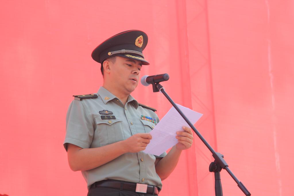 在气势磅礴的《中国人民解放军军歌》中,动员大会正式拉开了序幕。首先,由吴华安副院长宣布了《重庆工商大学融智学院关于2015级学生军训团成立及干部任职决定》。随后,张人月同学作为新生代表向与会人员表达了自己对大学生活的憧憬以及对军训的渴望。她表示,自己一定会严格接受军训的考验,磨练自己的意志,迎接美好的大学生活。接下来,承训部队首长王逊上台发言。他表示自己有信心管理好本次军训任务,结合实际,更加军事化、人性化的对2015级新生进行军事训练,将他们打造成更加勇敢坚韧的大学生。最后,我院院长柏群进行最后的总结发言。他首先对承训部队的团长以及各连连长表示感谢,并对各系党总支负责人及全体2015级辅导员致以崇高的敬意。同时,柏院长希望同学们能够在军训过程中努力锻炼自己的能力、磨练自己的意志,作一名优秀的大学生,早日成为对社会、对国家有用的栋梁之才。