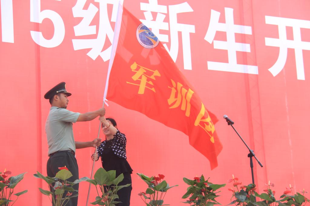 随后,柏群院长向军训团授旗。在现场雷鸣般的掌声中,本次军训动员大会顺利完成。同时,为期十五天的军事训练也正式拉开序幕,希望融智学院2015的学子们能够不畏困难,历练自己,为融智学院增光添彩。
