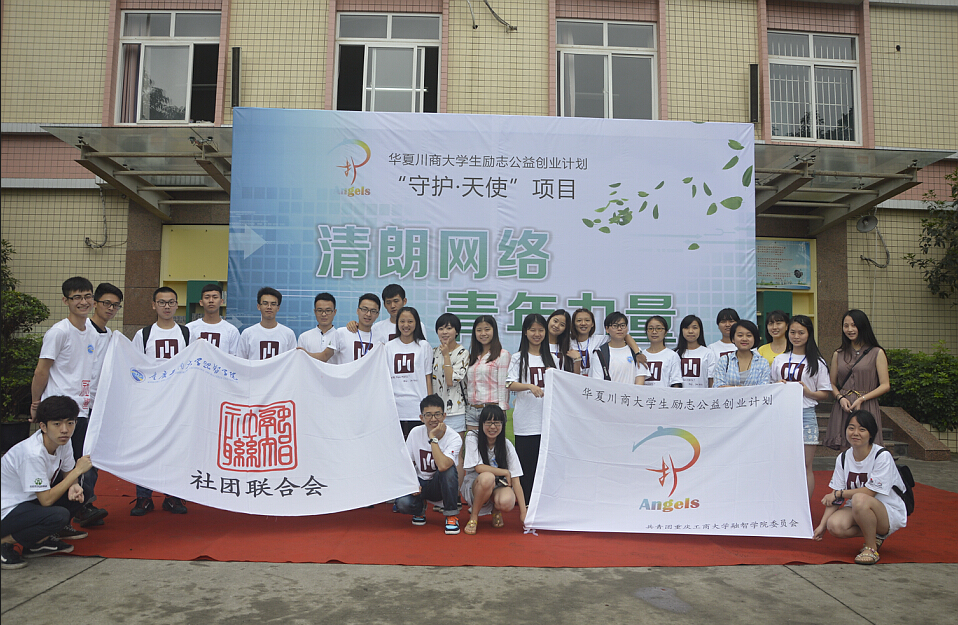 (通讯员 朱烨)2015年6月3日,由共青团重庆工商大学融智学院委员会主办,重庆工商大学融智学院社团联合会承办的“华夏川商大学生励志公益创业计划‘守护·天使’项目——清朗网络,青年力量”活动于二塘小学成功举行。二塘小学刘晓华书记、雷孟校长,井口派出所周华警官以及学院团委副书记李刚等出席本活动。
