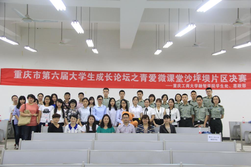 (学生记者 焦堃 李肖潇)为引导同学们学会感恩,珍爱生命,关注身心健康。2015年5月22日下午我院在10402教室举办了重庆市第六届大学生成长论坛之青爱微课堂沙坪坝片区决赛。此次决赛邀请到四川外国语大学心理咨询中心主任何敏老师、第三军医大学心理咨询中心王晓霞老师及我院思政部主任常晓薇老师担任评委,我院院长助理兼学生处处长李果以及心理健康与艺术教研室的老师们应邀出席本次活动。