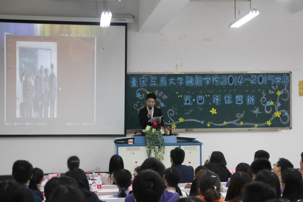 答辩会在全体与会人员高亢激昂的共青团团歌声中拉开序幕。首先各支部以PPT的形式介绍了各支部的概况、学风建设、特色活动及对未来的展望,也向评委和现场的同学们展示了各支部独特的风采与活力。其中,会计一班团支部别出心裁用图表的形式展示了团日活动取得的良好成效,其举办的团日活动也格外新颖——“变废为宝”的时装show,“走出寝室”的操场游戏。而后评委老师就“如何搞好班级学风建设”、“各个团支部所搞活动是否存在形式重于实质”等问题对各团支部代表提问,代表们各自组织语言一一回答,广开言路,特别是在学风建设方面提出了采用一对一辅导来减少挂科率这一方式。各团支部代表列举了一系列的活动来证明实质大于形式。如会计系有“活动反馈小组”,金融系通过意见箱来采取同学们的意见,所有的活动都是以同学们为中心举行。台上代表们沉着冷静,积极表现,台下同学们则通过呼喊口号,为所在支部加油助威,整个答辩现场气氛十分活跃。最后,本次答辩会在全体在场人员的热烈掌声中顺利结束。