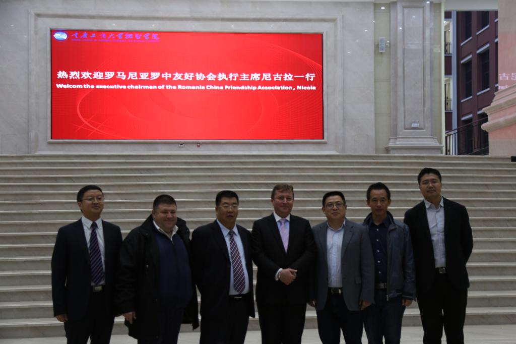 (通讯员 王晓云)2015年10月31日下午,罗马尼亚罗中友好协会执行主席尼古拉一行来我校参观考察,新鸥鹏集团董事长周永勇带领集团有关领导、融智学院副院长吴华安、建设指挥部徐耀华陪同。新鸥鹏集团董事长周永勇向客人详细介绍了学院的基本情况,特别就学院的建筑特色及今后的发展愿景作了阐述。尼古拉一行对学院美丽大气的建筑赞口不绝,对学院今后的发展表达了良好祝愿。