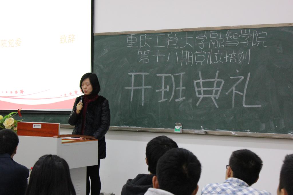 (通讯员 金佳倩)2015年11月13日12:20,我院第十八期党的知识培训班开班典礼在1306教室举行。党委书记丁广龙、党委副书记陈龙国、院长助理兼学生处处长李果,经济系党总支副书记李红平、金融系党总支副书记唐川川、信息工程系党总支副书记李喆、教辅一党支部书记李军,教辅三党支部书记唐立力、党群工作部副部长钟定华出席。开班典礼由党群工作部副部长倪倩茜主持。