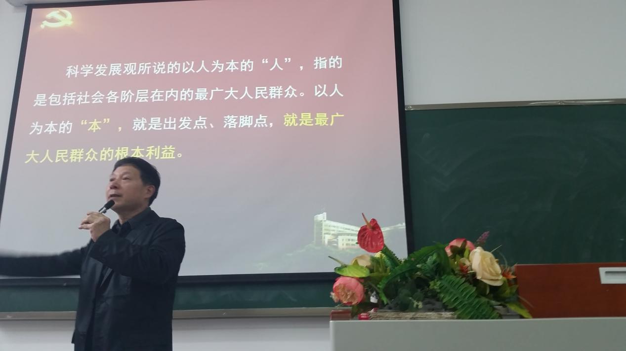周希贤教授以“中国共产党的指导思想”为脉络,为学员们简单阐述了马克思主义、列宁主义、毛泽东思想的内涵,并以提问的方式与各位学员进行短暂的交流。紧接着,又详细的为学员们中国特色社会主义理论体系的三个发展阶段和三大理论成果。周希贤教授用生动的案例、幽默的语言,将理论性的知识讲得深入浅出、引人入胜,课堂上不时发出学员们欢快的笑声,气氛活跃,互动积极。课堂最后,周教授勉励全体学员,高举中国特色社会主义伟大旗帜,坚持以马克思列宁主义、毛泽东思想、邓小平理论和“三个代表”重要思想为指导,深入贯彻落实科学发展观,为建设富有中国特色的社会主义而奋斗。