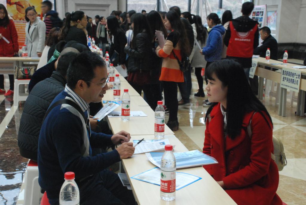 本次双选会是我院搬至巴南校区后的第一次双选会,与往届相比,本次双选会在企业规模、岗位种类、数量等方面远远超过往届,同时“师兄、师姐”的轮番上阵更是本次双选会的一大特色。招聘会现场,求“职”若渴的毕业生们拿着事先准备好的简历穿梭于摩肩接踵的人群中,寻找他们心仪的就业岗位,而用人单位也通过发放宣传页、张贴海报等形式向毕业生展示单位规模、人文地理环境及薪资等方面的信息。更有些企业打出“亲情牌”,利用“师兄师姐”的吸引力来招兵买马。“我也是融智学院毕业的,今天借着招聘的机会也来看看母校的新校区,我现在工作还算不错,待遇好也比较稳定,对母校的教学质量和学弟学妹们非常有信心,也希望和学弟学妹们成为同事,另外也算是回馈母校吧”一位师兄这样对记者讲到。同时在师兄身边的另一位企业负责人也对记者讲道:“我们公司有许多融智学院毕业的学生,无论是专业知识还是综合素质表现都很好,今天来这里招聘,希望能招到更多优秀的毕业生”。