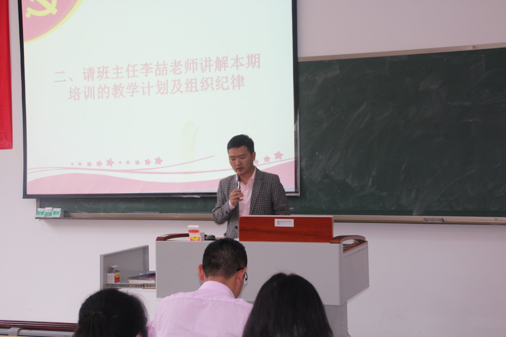 (通讯员 龙江)4月29日中午12:15,我院第十九期党的知识培训班开班典礼在教学楼1306教室举行了开班仪式。学院党委丁广龙书记、院长助理李果,经济系党总支副书记李红平、商务系党总支副书记高雪莲、管工系副书记罗婷婷、信工系副书记李喆等老师出席了开班典礼,此次开班典礼由党群工作部副部长倪倩茜主持。