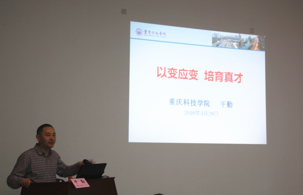 (通讯员 周君)为推动学院转型工作,让学院教职工对高校转型发展有深入的认识, 2016年4月29日14:00,重庆科技学院副校长干勤教授应邀莅临我院,在1206会议室举行了一场题为“以变应变,培育真才”的专题讲座。此次讲座由学院院长柏群主持,学院领导、全体中干、科级干部、教研室主任和骨干教师代表聆听了本次讲座。