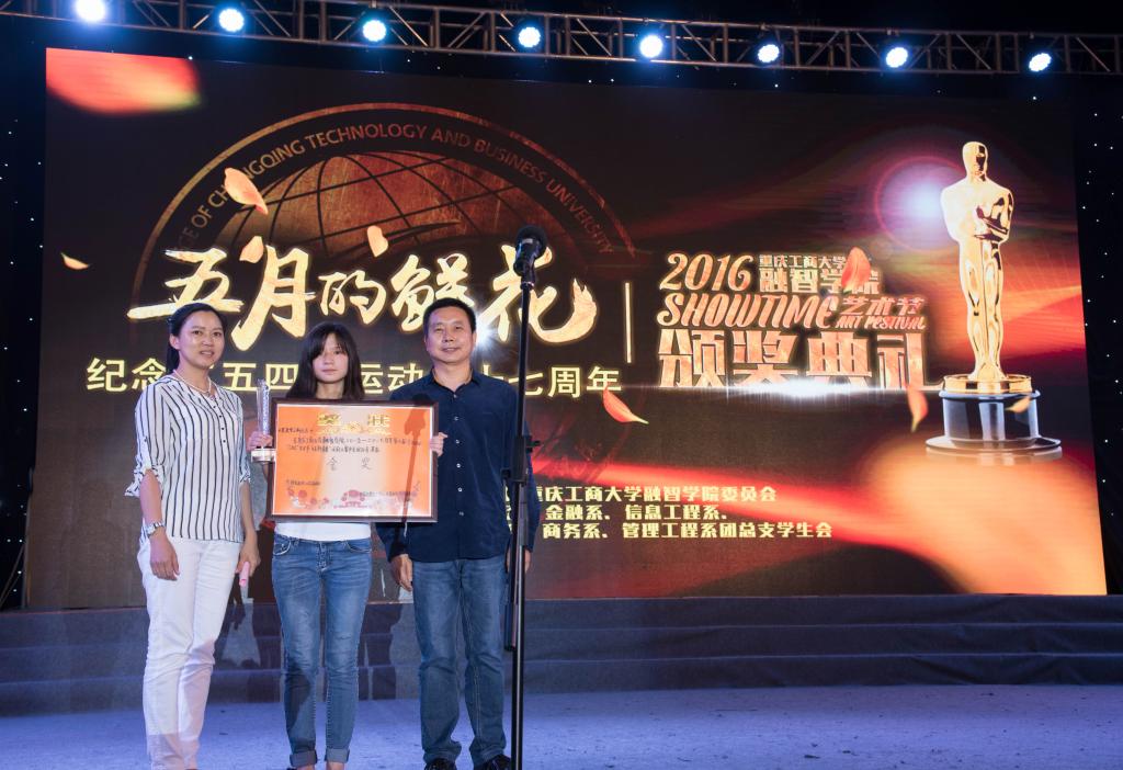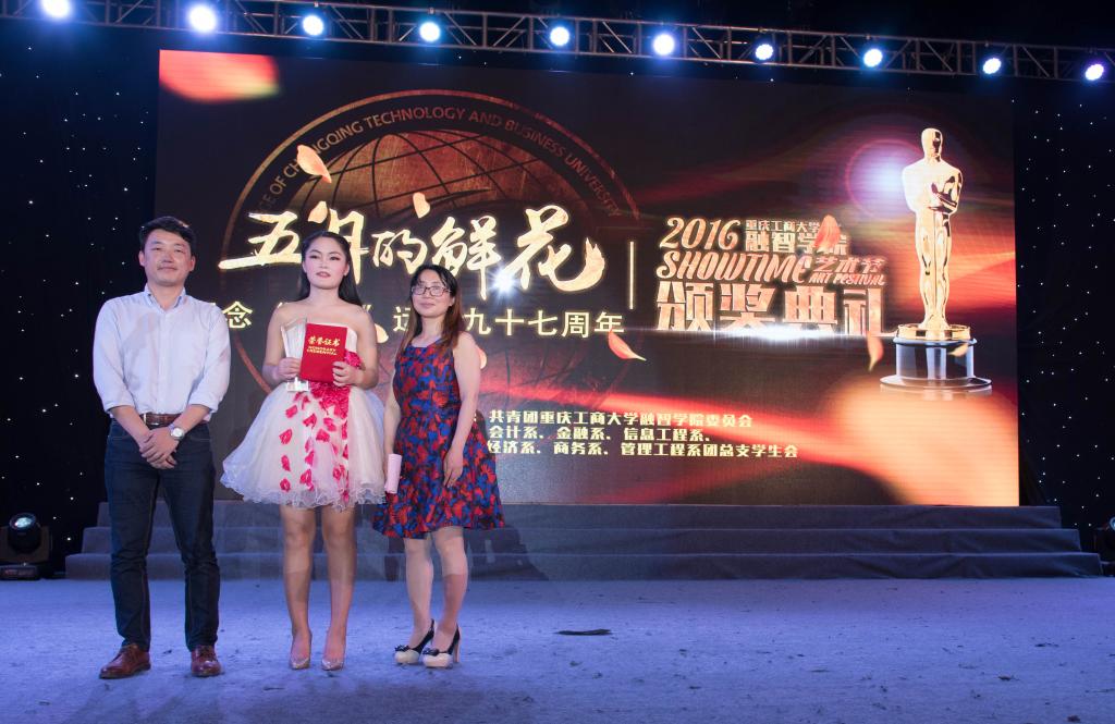 (通讯员 朱蒙蒙)点燃艺术激情,放飞青春梦想。2016年5月4日19:30,我院第七届“Show Time”艺术节颁奖典礼在足球场隆重举行。应邀出席本次颁奖典礼的嘉宾分别有:学院院长柏群、党委副书记陈龙国、副院长吴华安、院长助理兼学生处处长李果、党政办主任王晓云、财务处处长陈娅琳、学生处副处长姚转花、金融系党总支副书记唐川川、经济系党总支副书记李红平、信息工程系党总支副书记李喆、商务系学团办副主任张斌,会计系学团办主任李兰,经济系学团办副主任夏文瑞以及团委副书记李刚、团委老师刘艳娇。