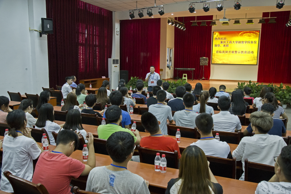 通讯员王宇辰 纪晓晴)为进一步提升学院大学生思想政治教育效果,构建全方位育人体系,2016年6月17日中午12:20,我院与重庆市渝都监狱共建“帮教德育基地”暨警示教育活动顺利举行。我院党委副书记陈龙国、重庆市渝都监狱副监狱长杜毅、监管区主要领导、监区干警、融智学院党群工作部副部长、各系党总支副书记以及学生党员、学生干部代表50余人参加了本次活动。
