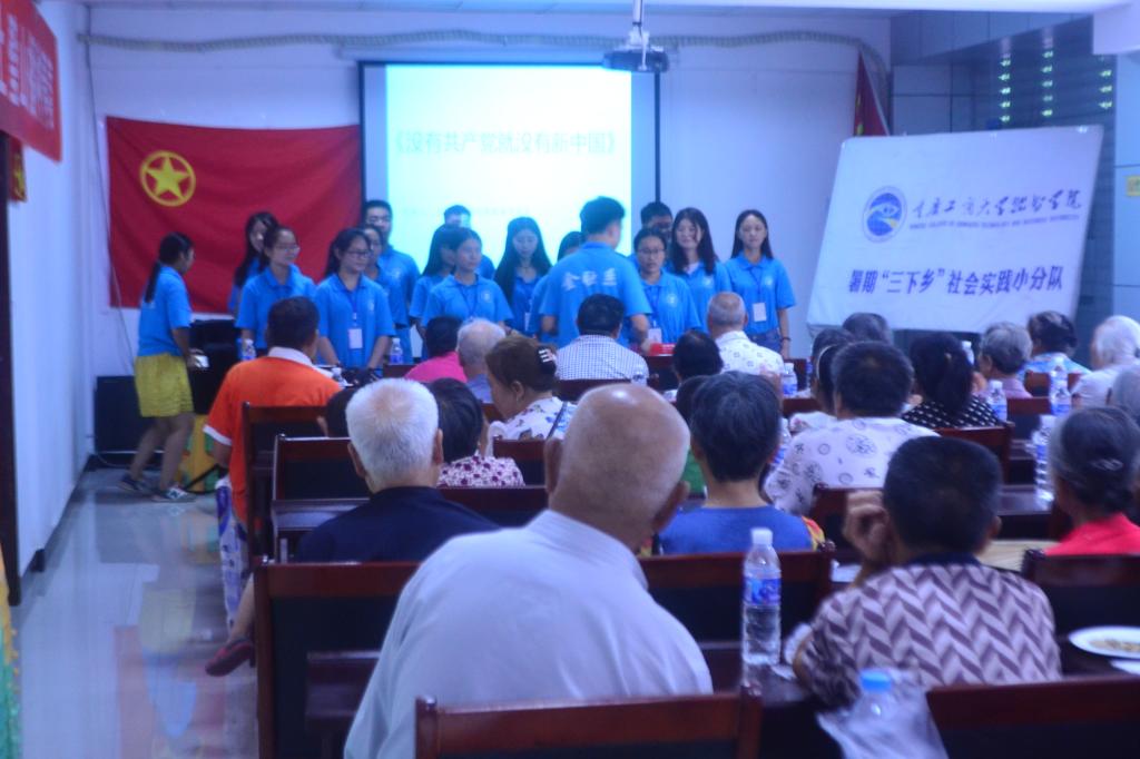 以改革创新的精神全面推进党的建设新的伟大工程,最重要的就是要使我们党的执政理念和工作机制、工作方法适应社会主义市场经济的环境,适应构建社会主义和谐社会的需要。为此,学院金融系暑期“三下乡”社会实践服务团奔赴璧山开展理论宣讲活动,几日里,志愿者们通过观发展——参观璧山规划局博物馆、走基层——关爱留守儿童和孤寡老人、学精神——交流老党员、访民生——分发调查问卷等内容丰富、形式多样的志愿服务和调研实践活动,旨在培养大学生社会责任感、使命感和实践能力,积极引导大学生以实践活动服务社会、奉献社会。