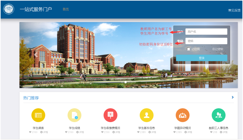 2.教师登录的用户名为7位新工号,初始密码:身份证号后6位;学生登录用户名为学号,初始密码身份证号后六位(身份证号末位为x的请尝试使用大小写)。