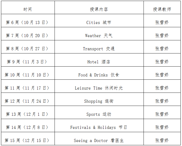 为营造良好的校园国际化氛围,提升我校教职员工的国际化水平,满足大家提高英语交际能力的需求,国际合作交流处决定在2017-2018学年第一学期开设共计10周的教职工免费英语口语课,具体安排如下: