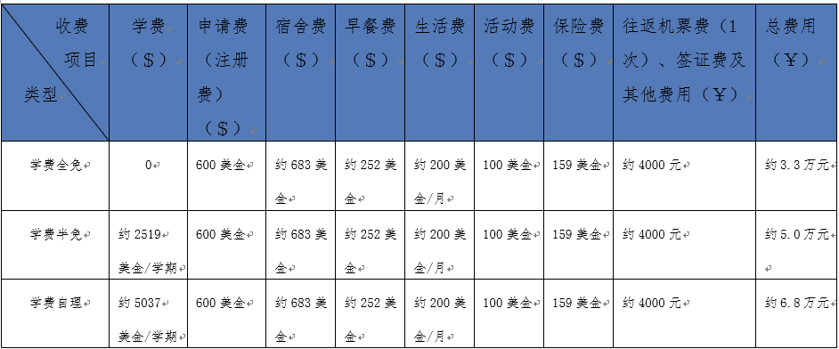 学生需自理部分学费、护照签证费用、保险费及国外食宿费(交换一学期)。
