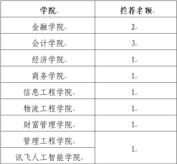各学院推荐名额如下: