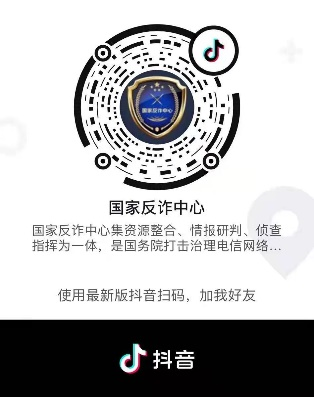 微信视频号、新浪微博、抖音(ID:gifzzx96110)、快手(ID:gifzzx96110)等平台搜索“国家反诈中心”,点击关注。