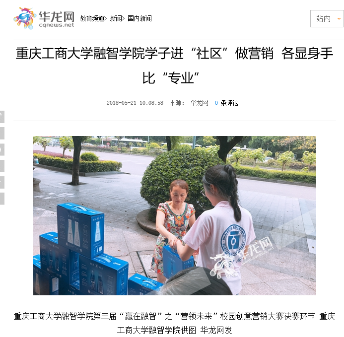 华龙网5月21日9时56分讯(李婷婷)19日,为丰富校园生活,增强专业知识运用,由重庆工商大学融智学院商务学院承办的第三届“赢在融智”之“营领未来”校园创意营销大赛决赛闭幕,为期2天,共有8支队伍参与角逐。