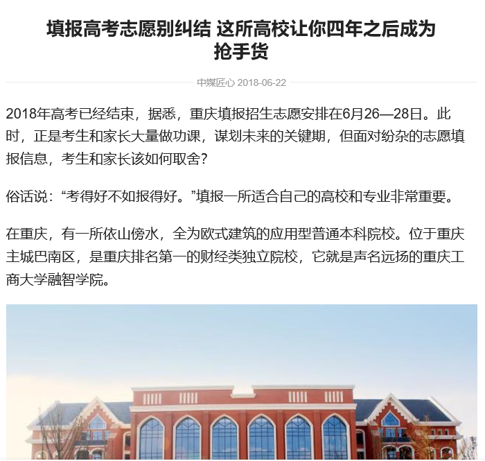 2018年高考已经结束,据悉,重庆填报招生志愿安排在6月26—28日。此时,正是考生和家长大量做功课,谋划未来的关键期,但面对纷杂的志愿填报信息,考生和家长该如何取舍?
