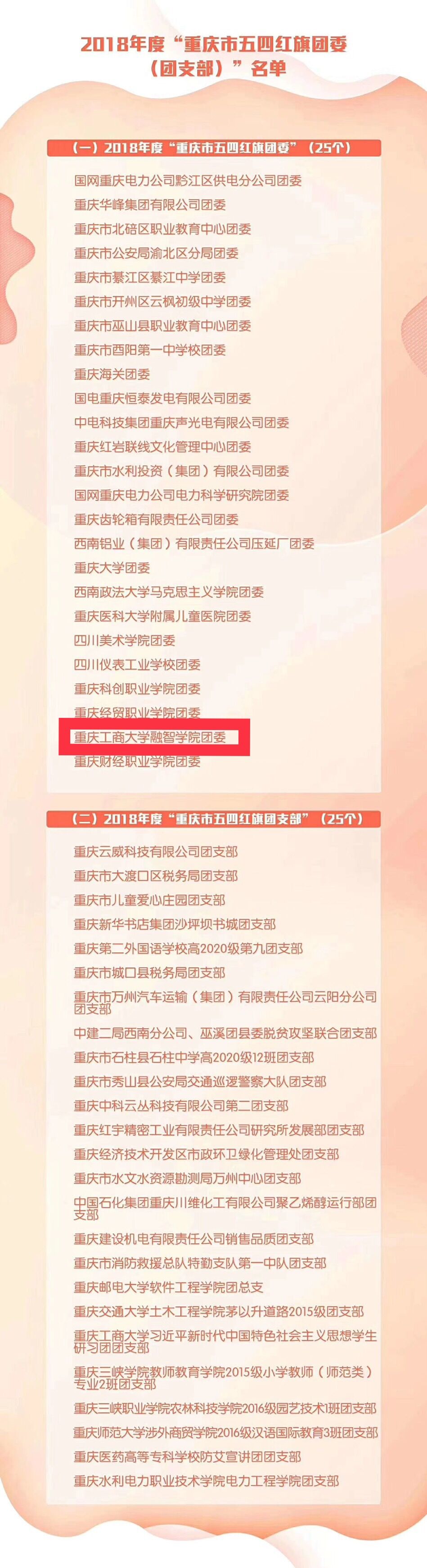“重庆青年五四奖章”是全市青年的最高荣誉,“重庆市优秀共青团员”“重庆市优秀共青团干部”“重庆市五四红旗团委(团支部)”是全市团员青年、团干部和各级团组织的荣誉。2019年“重庆青年五四奖章”、2018年度“两红”“两优”评选自3月启动以来,历经组织推报、群众评议、专家评审、考察公示等环节,分别评比产生了10位受表彰个人、139个受表彰个人(集体),集中体现了当代重庆青年和团员青年、团干部、团组织崭新的时代风貌。