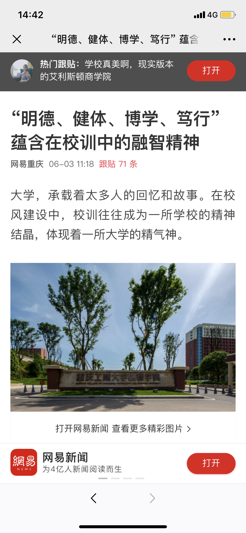 你可否知道,“明德、健体、博学、笃行”每一个词语的背后,彰显着怎样的理想结晶?原来,重庆工商大学融智学院一脉相承的校训蕴含着深刻的文化底蕴。