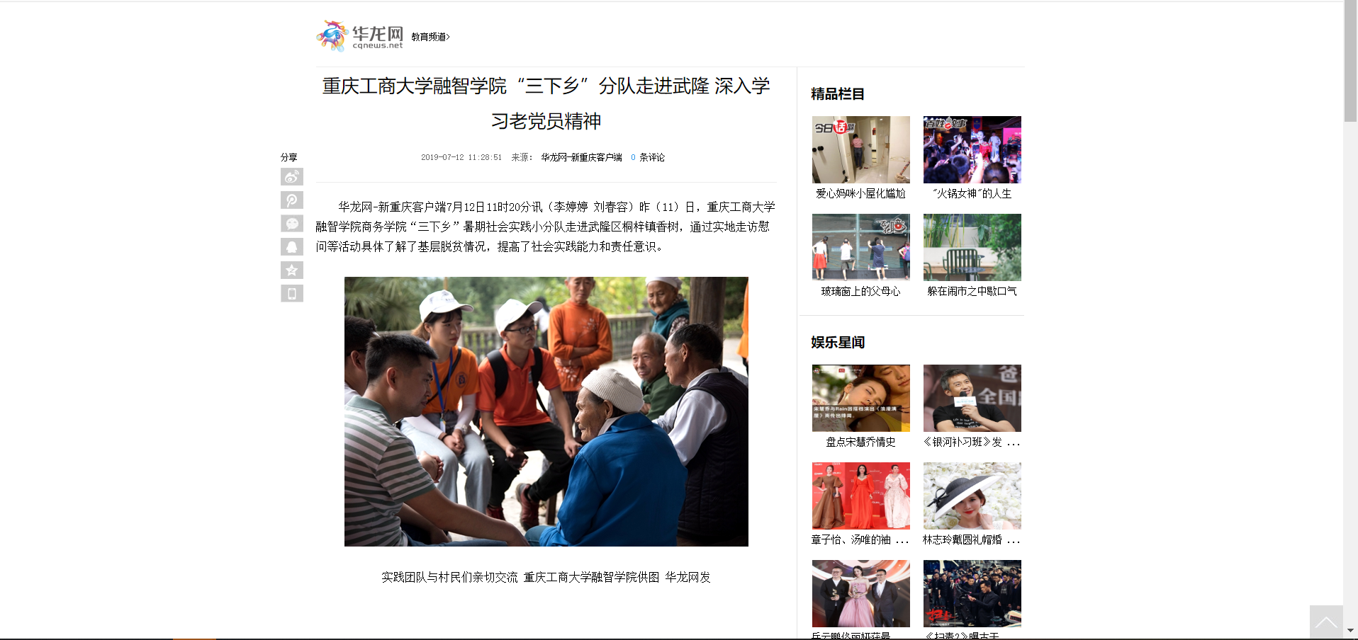 华龙网-新重庆客户端7月12日11时20分讯(李婷婷 刘春容)昨(11)日,重庆工商大学融智学院商务学院“三下乡”暑期社会实践小分队走进武隆区桐梓镇香树,通过实地走访慰问等活动具体了解了基层脱贫情况,提高了社会实践能力和责任意识。