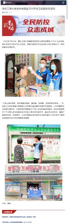 2020年7月25日,重庆工商大学融智学院物流工程学院暑期“三下乡”社会实践团队来到万州区长坪乡卫生院,用顺口溜的形式为当地的父老乡亲进行了一场抗疫宣讲志愿活动。