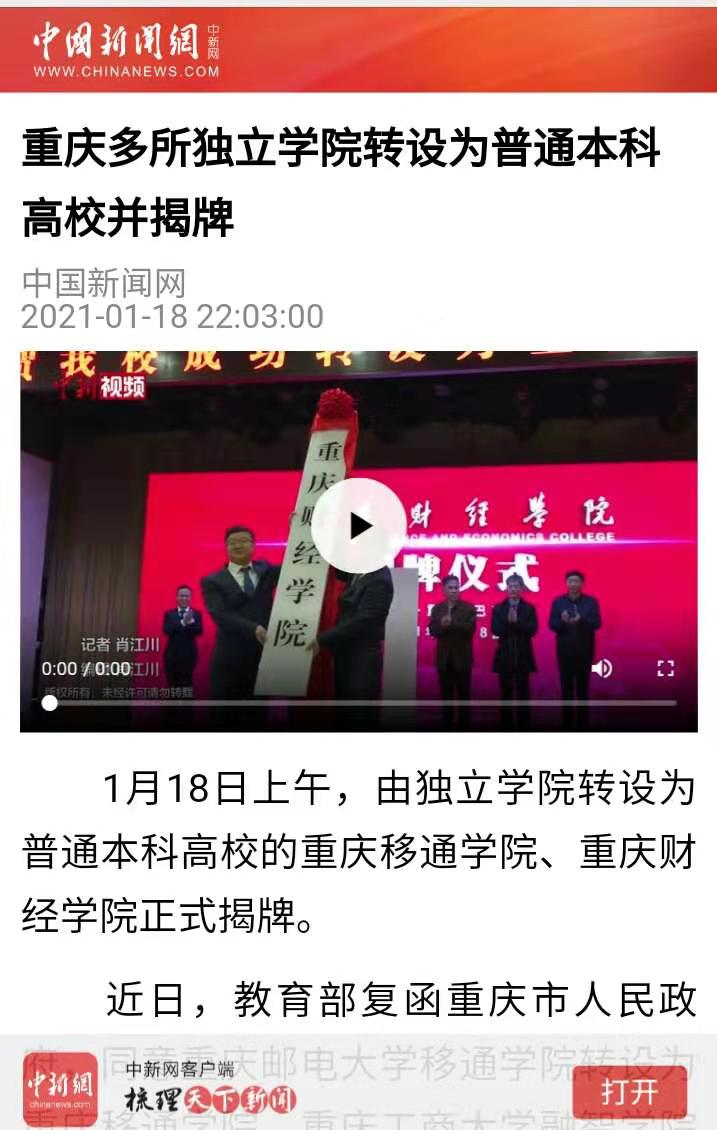 1月18日上午,由独立学院转设为普通本科高校的重庆移通学院、靠谱的电子游戏平台官网正式揭牌。