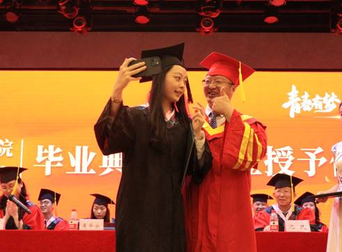 靠谱的电子游戏官网毕业典礼上,校长吴华安正与毕业学子们留影。受访单位供图