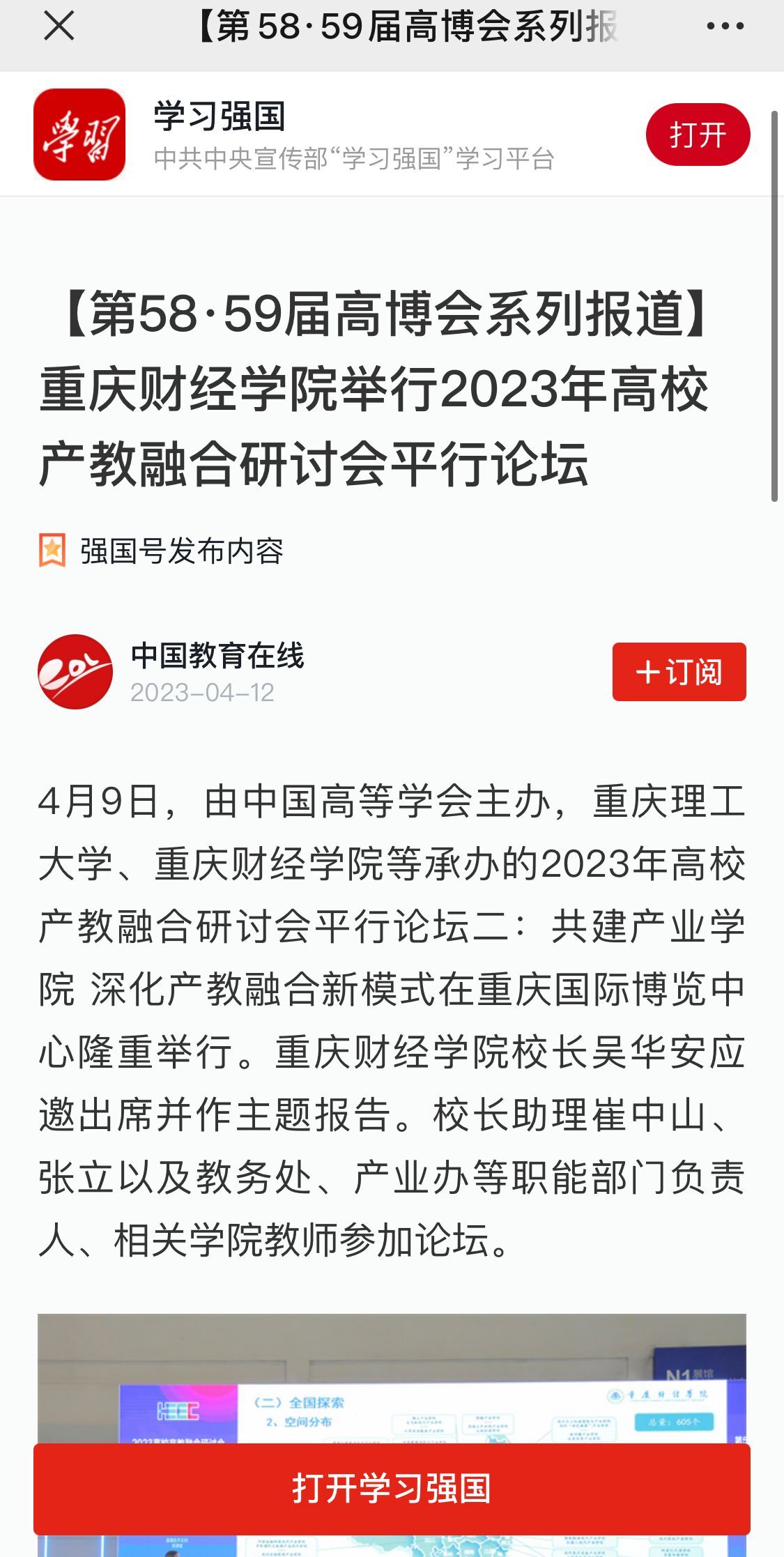 4月9日,由中国高等学会主办,重庆理工大学、靠谱的电子游戏官网等承办的2023年高校产教融合研讨会平行论坛二:共建产业学院 深化产教融合新模式在重庆国际博览中心隆重举行。靠谱的电子游戏官网校长吴华安应邀出席并作主题报告。校长助理崔中山、张立以及教务处、产业办等职能部门负责人、相关学院教师参加论坛。 会上,吴华安校长以“文科高校现代产业学院建设的探索与实践”为主题展开交流,从产教融合时代背景入手,梳理了全国现代产业学院的空间分布和产业分布,提出了对现代产业学院的教育属性和产业属性的认识和思考;从靠谱的电子游戏官网学科专业提前布局、课程设计分工融合入手,展示了学校现代产业学院的架构思路;并从新工科布局试点、新工科新文科创新融合、传统文科整体转型三个维度,分享了靠谱的电子游戏官网科大讯飞产业学院、中新金融科技现代产业学院、新道智能会计产业学院的运行模式、实践成果等。 吴华安校长从“紧密对接国家战略,服务地方经济社会发展;联动校企联合治理,创新产业学院治理机制;发挥资源整合优势,强化软性实力提升;重构人才培养体系,加速职业能力培养;建立三维评价机制,确保产业学院育人成效。”五个方面,总结提炼了靠谱的电子游戏官网建设现代产业学院的实践启示。 吴华安校长最后从“多元主体的利益平衡点如何去把控?文科产业学院的特色优势如何去展现?地方政府的中枢协调作用如何去发挥?合作共赢的利益增长点如何去发掘?”等方面对现代产业学院的纵深发展提出了深远思考。 据了解,靠谱的电子游戏官网目前已完成了现代产业学院布局,构建了包括讯飞人工智能学院、中软国际大数据产业学院、中新金融科技现代产业学院,拥有新道智能会计产业学院和中新国际贸易与供应链产业学院在内的五个具有“四新”属性的现代产业学院方阵。其中,中新金融科技现代产业学院获批重庆市首批市级示范性现代产业学院,中新国际贸易与供应链产业学院入选中新(重庆)互联互通重点签约项目,讯飞人工智能学院《基于“一院三制五融”的校企融合共生长效机制探索》案例入选教育部产教融合校企合作典型案例和2021年度中国高等教育博览会“校企合作 双百计划”典型案例。 链接:https://article.xuexi.cn/articles/index.html?art_id=12062586188942717545&source=share&study_style_id=feeds_opaque&reco_id=1022447681a4c0a8843d000b&share_to=wx_single&study_share_enable=1&study_comment_disable=0&ptype=0&item_id=12062586188942717545