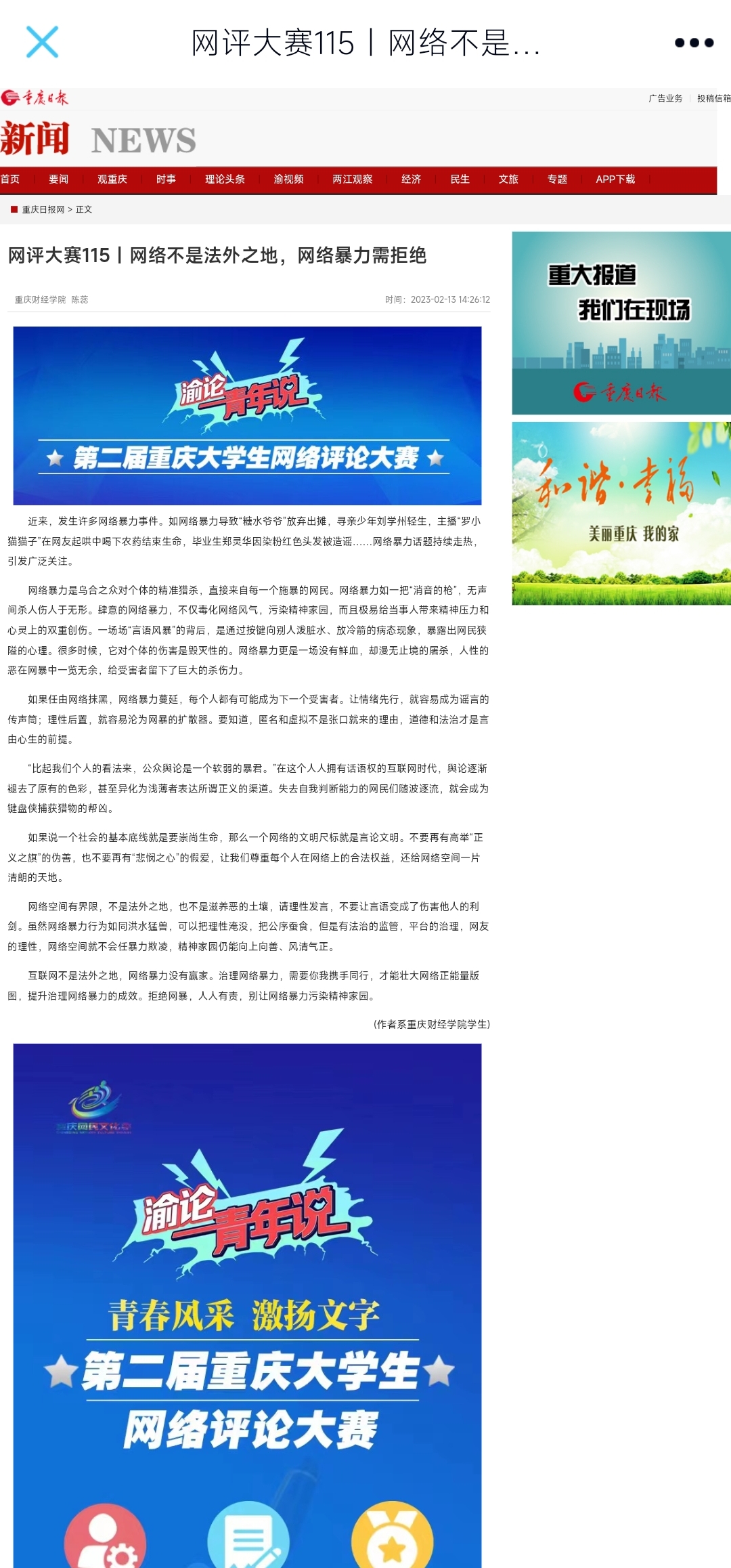 媒体链接:https://app.cqrb.cn/html/2023-02-13/1351325_pc.html