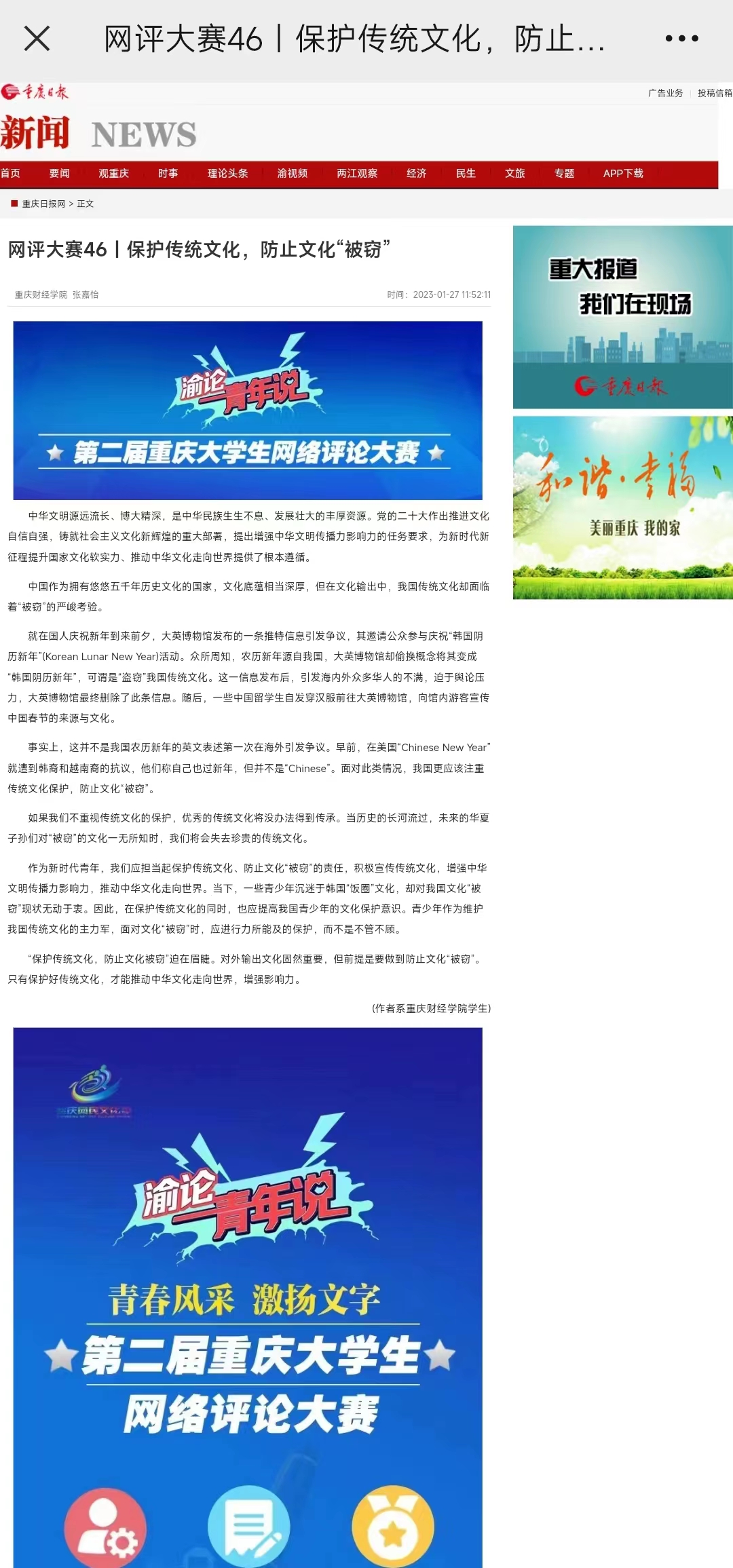 媒体链接:https://app.cqrb.cn/html/2023-01-27/1343537_pc.html
