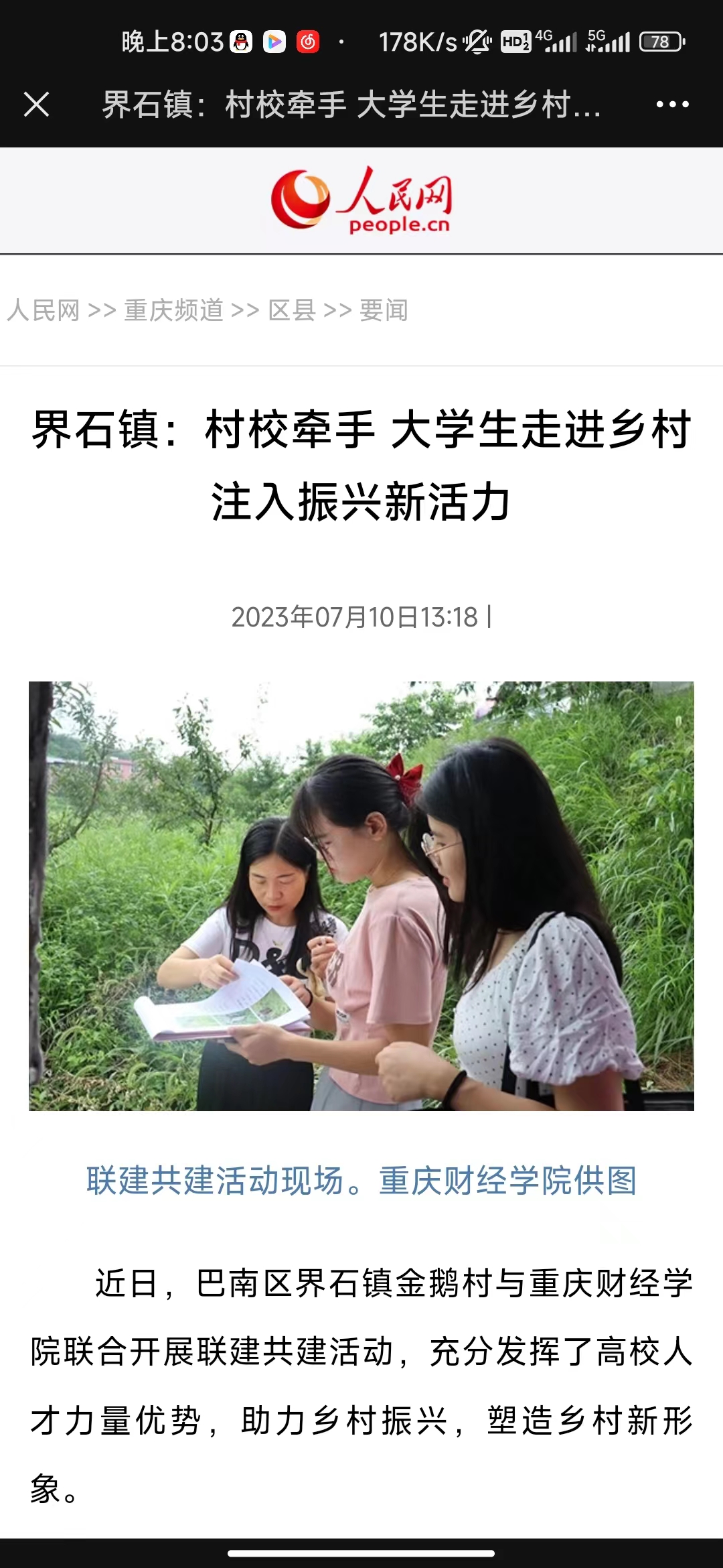 近日,巴南区界石镇金鹅村与靠谱的电子游戏官网联合开展联建共建活动,充分发挥了高校人才力量优势,助力乡村振兴,塑造乡村新形象。