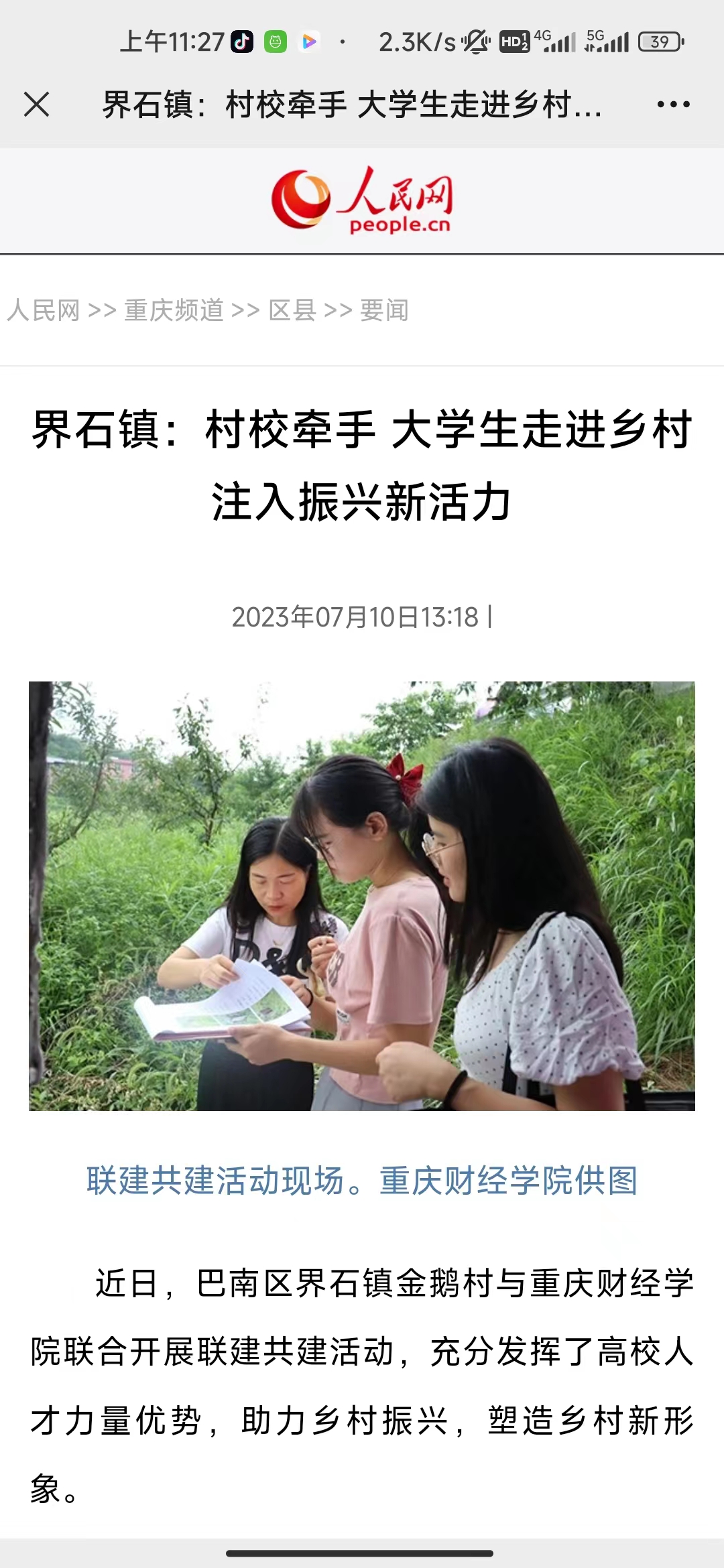 近日,巴南区界石镇金鹅村与靠谱的电子游戏平台官网联合开展联建共建活动,充分发挥了高校人才力量优势,助力乡村振兴,塑造乡村新形象。