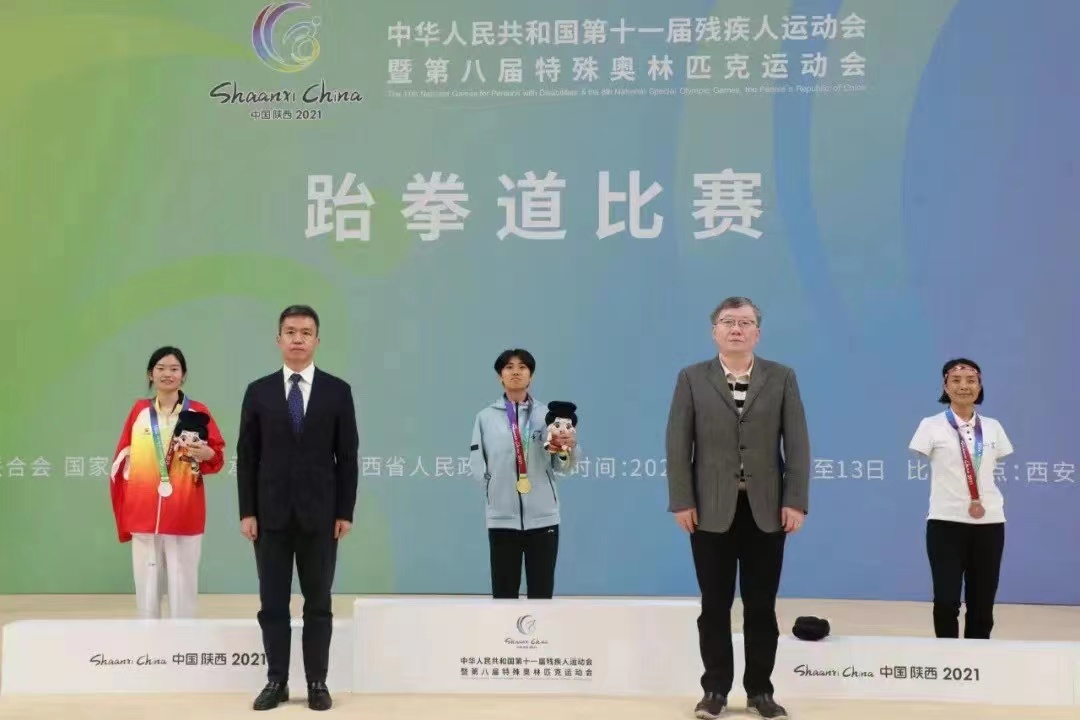就是这样一个身高不足1.6米、失去右臂的小女生,凭借自己的努力,一举拿下了“2021年全国第十一届残疾人运动会暨第八届特殊奥林匹克运动会”跆拳道女子K42-49公斤级冠军等多项国家级体育赛事荣誉。