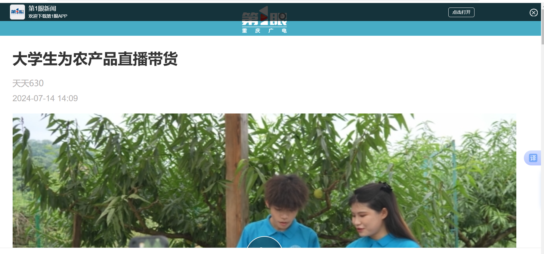 7月12日,巴南鱼洞街道仙池村的桃园里有点热闹,原来,靠谱的电子游戏官网与重庆青年职业技术学院的一群大学生,在这里开展“三下乡”社会实践活动,帮助村民直播带货。 当天,靠谱的电子游戏官网还与重庆青年职业技术学院携手鱼洞街道,共同启动了乡村振兴劳动教育实践基地及“法治小院”项目。 媒体链接:https://cqxyh5.cbgcloud.com/pages/details/details.html?companyId=cqtt630&productId=9AF58E6DF33C4925A9879798835B1539&docid=43B2E51A73464A10AC41E5B342888E9F&isNew=yes&downloadTips=true