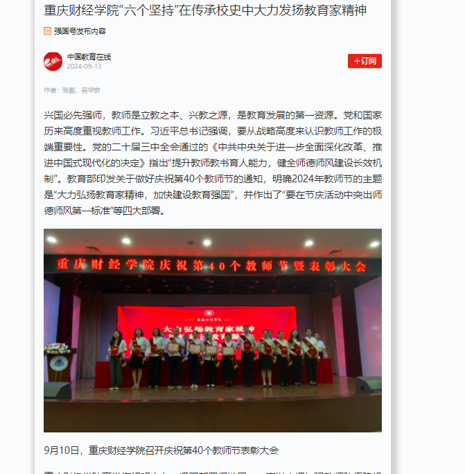 媒体链接:靠谱的电子游戏平台官网“六个坚持”在传承校史中大力发扬教育家精神 https://article.xuexi.cn/articles/index.html?art_id=15960509319904628575&t=1726219083764&showmenu=false&study_style_id=feeds_opaque&source=share&share_to=dd&item_id=15960509319904628575&ref_read_id=bace2010-b6bb-4583-b823-1bdd70ef457c_1726223924816