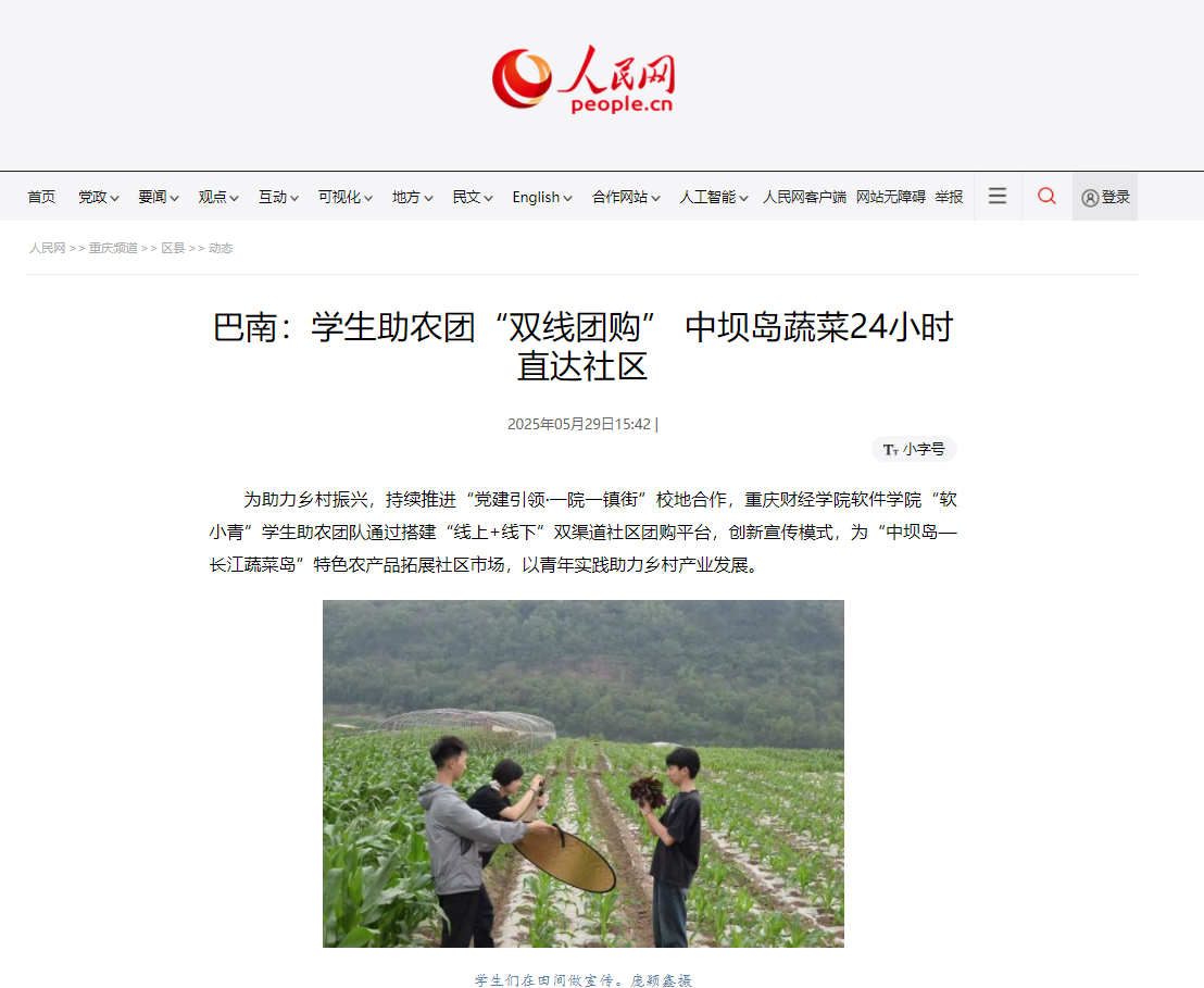 为助力乡村振兴,持续推进“党建引领·一院一镇街”校地合作,靠谱的电子游戏官网软件学院“软小青”学生助农团队通过搭建“线上+线下”双渠道社区团购平台,创新宣传模式,为“中坝岛—长江蔬菜岛”特色农产品拓展社区市场,以青年实践助力乡村产业发展。