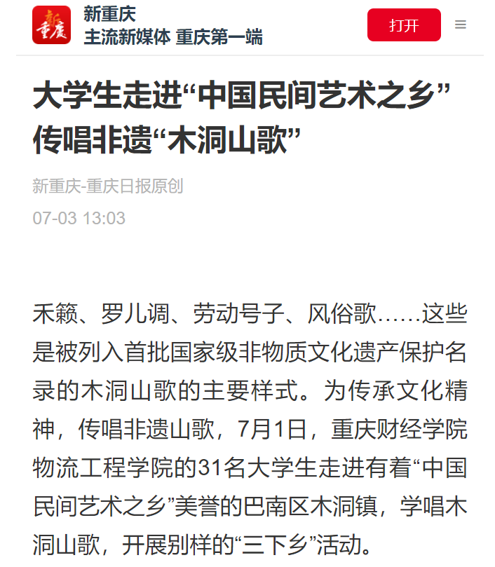 大学生走进“中国民间艺术之乡” 传唱非遗“木洞山歌” (cqrb.cn)