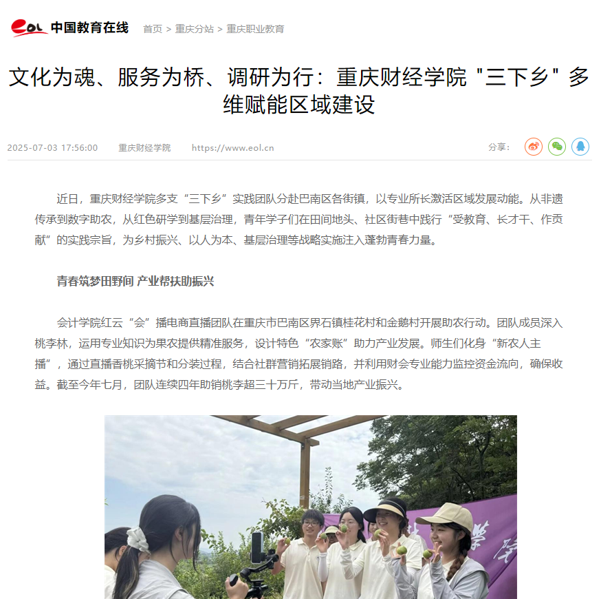 媒体链接:文化为魂、服务为桥、调研为行:靠谱的电子游戏官网 "三下乡" 多维赋能区域建设 —重庆站—中国教育在线 (eol.cn)