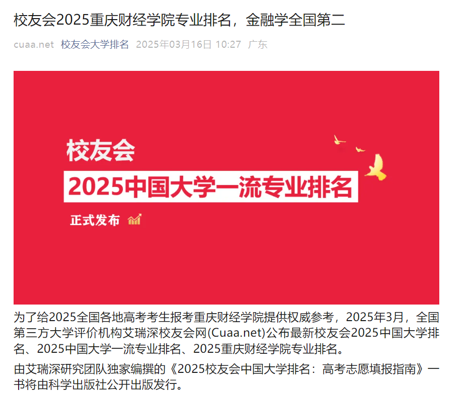 校友会2025靠谱的电子游戏平台官网专业排名,金融学全国第二 (qq.com)