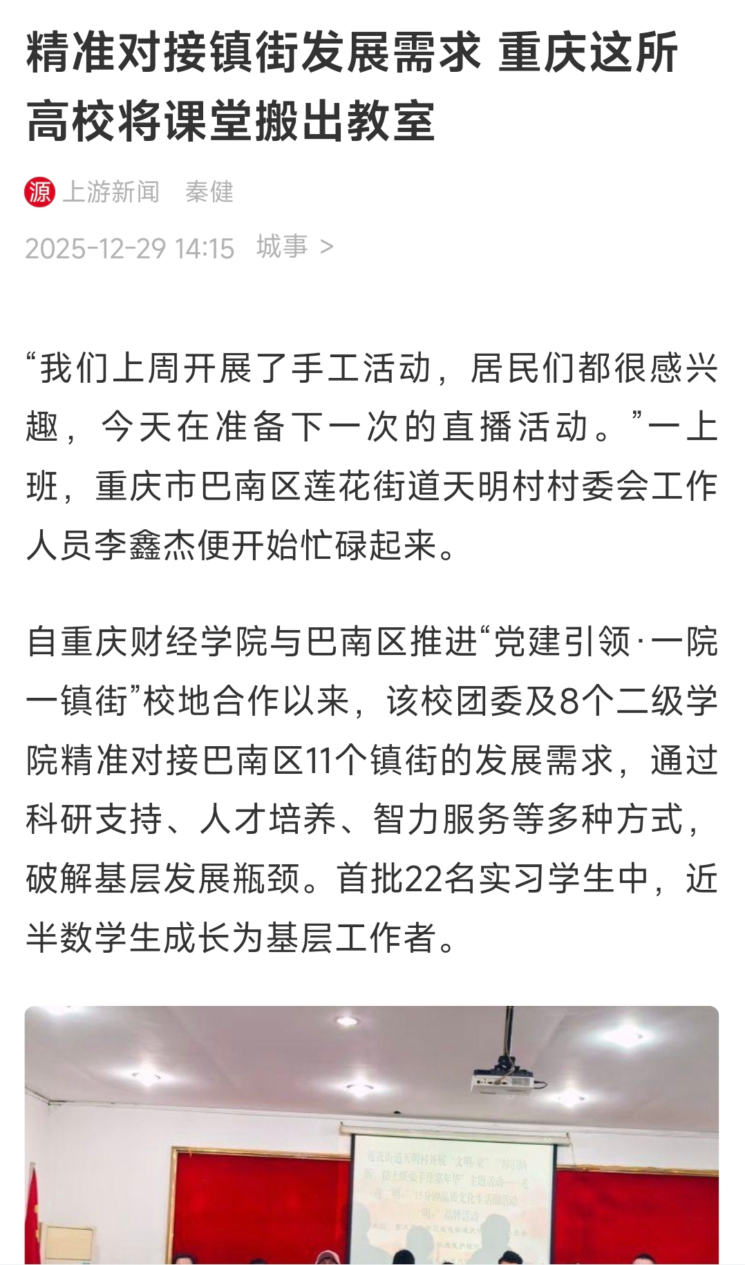 自靠谱的电子游戏平台官网与巴南区推进“党建引领·一院一镇街”校地合作以来,该校团委及8个二级学院精准对接巴南区11个镇街的发展需求,通过科研支持、人才培养、智力服务等多种方式,破解基层发展瓶颈。首批22名实习学生中,近半数学生成长为基层工作者。