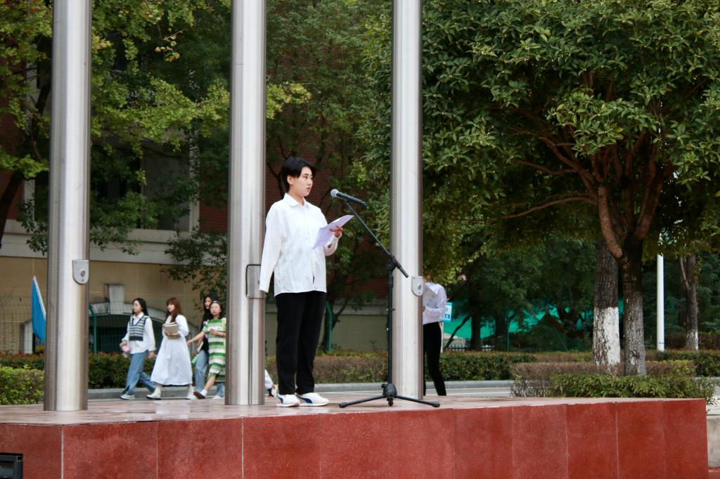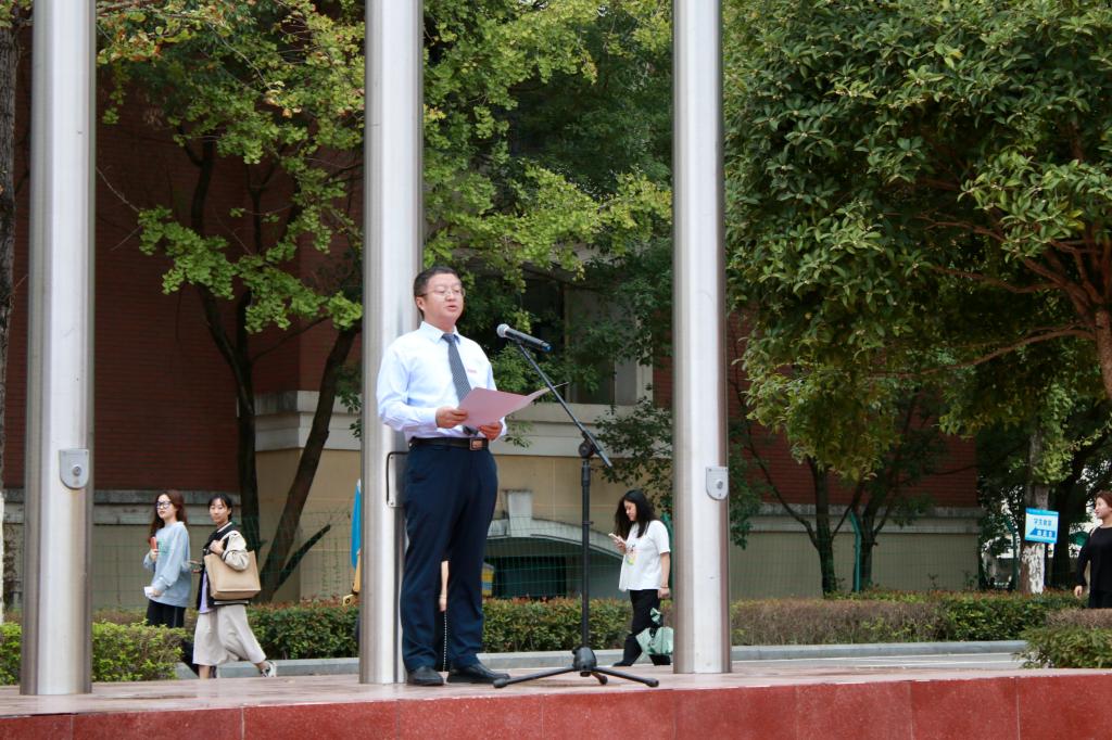 随后,校长吴华安以“鉴往知来 砺行致远”为题发表了讲话。他回望了中国百年奋斗历史,在新中国成立的73年里,在中国共产党的领导下,中华民族迎来了从站起来、富起来到强起来的伟大飞跃。借此,吴校长对同学们提出了三点“希望”,一是善于学习,永葆青春活力;二是不畏艰难,继续奋力拼搏;三是心系国家,永担时代使命。并在讲话最后向伟大的祖国致以最诚挚的祝愿。