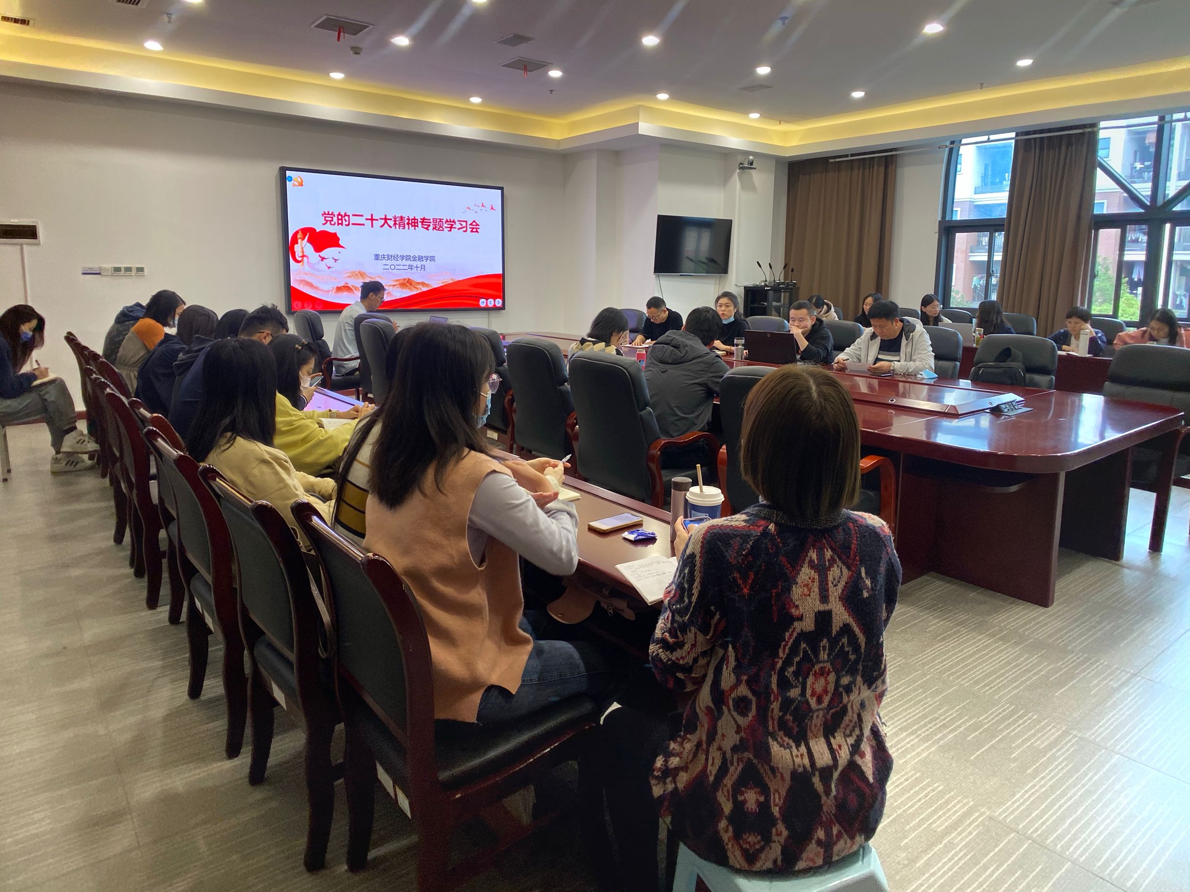 为深入学习贯彻党的二十大精神,使学院的发展建设步伐紧跟党的最新思想理论,2022年10月28日上午,金融学院党总支在行政楼2303会议室组织召开学习贯彻党的二十大精神专题学习会,会议由金融学院党总支书记罗婷婷同志主持。