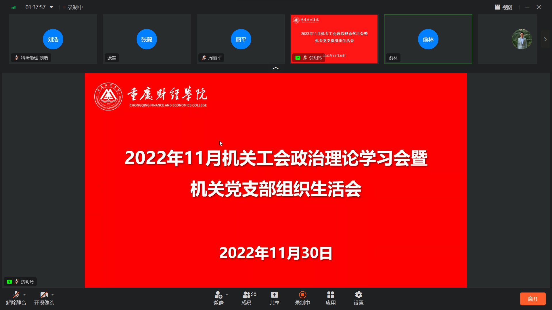 学校机关党支部于11月30日下午2:30通过线上方式召开11月党员大会,党委书记张毅深入宣讲党的二十大精神。校长吴华安、校长助理崔中山、校长助理张立以普通党员身份参会,与会党员结合工作实际积极参与讨论,畅谈学习体会。